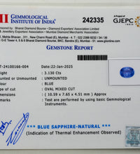 Natural Blue Sapphire Gemstone (3.13 Carats and 3.44 Ratti)
