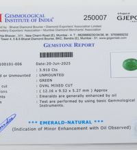 Certification: GII Certified Natural Panna (Emerald) 3.91 ct (4.30 Ratti) Faceted Oval Cut Gemstone