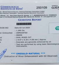 Our Panna (Emerald) gemstones are naturally mined from Zambia and come with GII certification, ensuring authenticity and exceptional natural brilliance....
