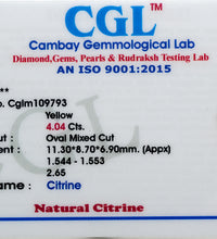 Our **Natural Citrine** is **CGL certified**, ensuring authenticity and exceptional brilliance. This **faceted oval-cut Citrine** weighs **4.04 carats (4.44 Ratti)** and radiates a golden glow that symbolizes abundance, confidence, and joy.