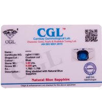 Certification:Certified Natural Blue Sapphire (Neelam) 5.00ct (5.50 Ratti) Faceted Cushion Cut Ring