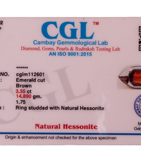 Certification:Certified Natural Hessonite (Gomed) 3.55 ct (3.91 Ratti) Faceted Ring