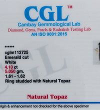 Certification:Certified Natural White Topaz 4.10 ct (4.51 Ratti) Ring