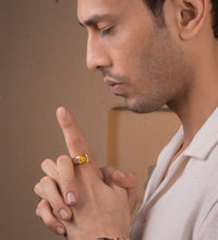 Our Yellow Sapphire ring for men is made with 100% naturally mined stone, set on rhodium-plated 925 silver, BIS Hallmark.