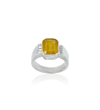 Certified Natural Yellow Sapphire (Pukhraj) 7.15ct (7.87 Ratti) Faceted Emerald Cut Ring