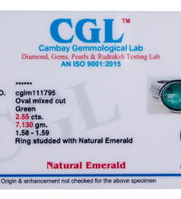 Certified Natural Zambian Emerald (Panna) 2.55ct (2.80 Ratti) Faceted Oval Cut Unisex Ring