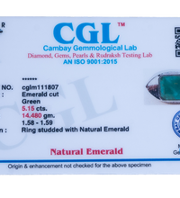 Certification:Certified Natural Zambian Emerald (Panna) 5.15 ct (5.67 Ratti) Faceted Emerald Cut Ring