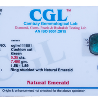 Certification:Certified Natural Zambian Emerald (Panna) 5.35 ct (5.89 Ratti) Faceted Cushion Cut Ring