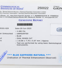 Certification: GII Certified Natural Neelam (Blue Sapphire) 4.48 ct (4.93 Ratti) Faceted Oval Cut Gemstone
