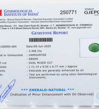 Certification: GII Certified Natural Panna (Emerald) 3.49 ct (3.84 Ratti) Faceted Oval Cut Gemstone