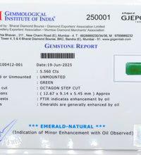 Certification: GII Certified Natural Panna (Emerald) 5.56 ct (6.12 Ratti) Faceted Octagon Cut Gemstone