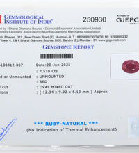 Certification: GII Certified Natural Manik (Ruby) 7.51 ct (8.26 Ratti) Faceted Oval Cut Gemstone