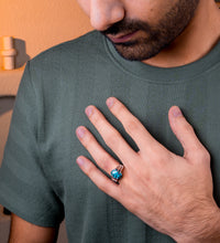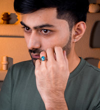 Our Turquoise Stone Ring is made with naturally mined turquoise stone, set on rhodium-plated 925 silver with a BIS hallmark.