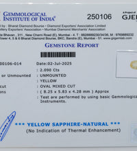 Natural Yellow Sapphire Gemstone (2.09 Carat and 2.30 Ratti)