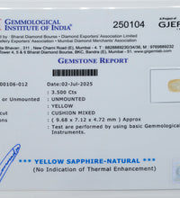 This GII Certified Natural Pukhraj (Yellow Sapphire) gemstone is naturally mined from Sri Lanka and weighs 3.18 carats (3.50 ratti)....