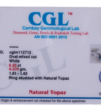 Certification:Certified Natural White Topaz 6.20 ct (6.82 Ratti) Ring